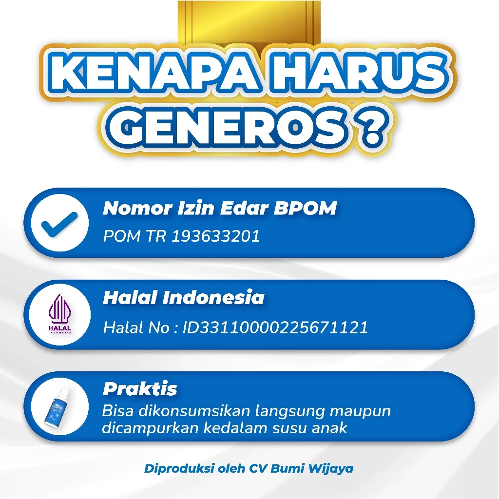 Generos terbuat dari sinergi 5 bahan herbal alam seperti madu hutan, ekstrak temulawak, ekstrak daun